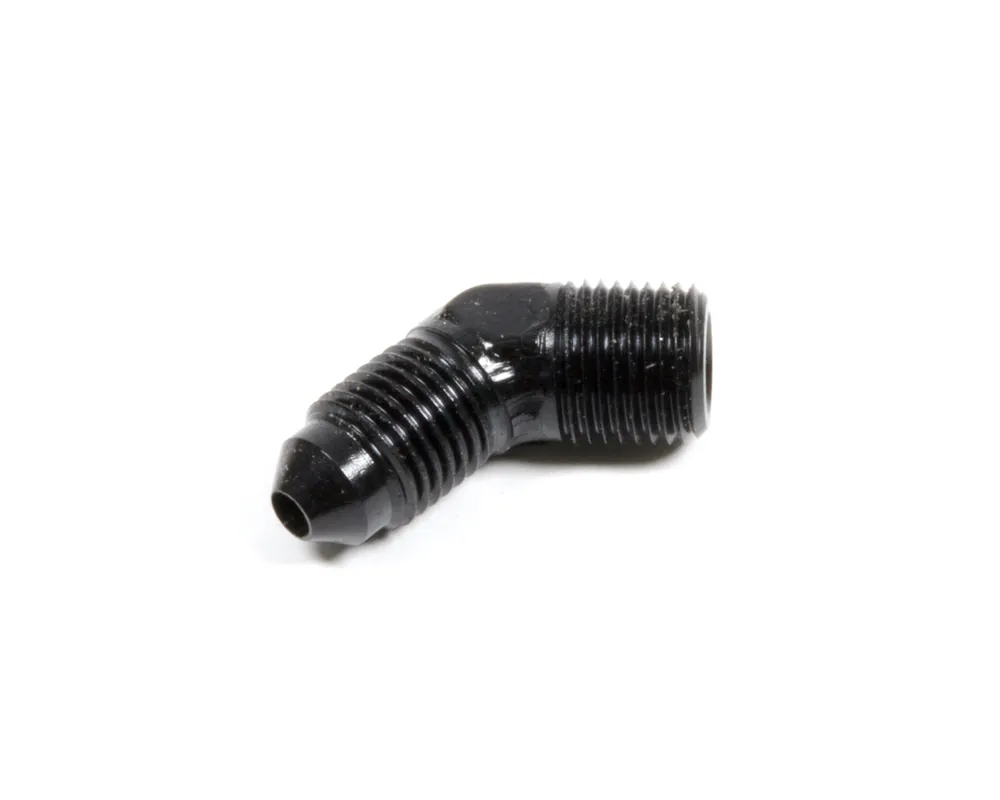 Fitting – Adapter – 45 Degree – 3 AN Male to 1/8 in NPT Male – Aluminum – Black Anodized – Each