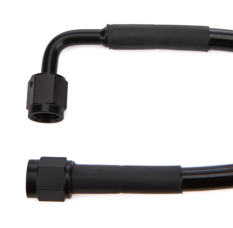 AN Hose Assembly – 3392 Series – 30 in Long – 4 AN Hose – 4 AN Straight to 4 AN 90 Degree Female – Braided Stainless – PTFE Lined – Black – Each
