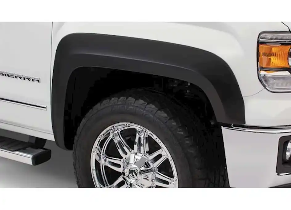You’ve equipped your vehicle with oversize wheels and tires for serious off-road traction and clearance. Now you need extra tire coverage to protect your rig’s body and maybe even comply with local laws. Bushwacker Extend-A-Fender Flares deliver premium-grade protection and style matched to oversized tires, yet as tough as they are, they go on easily with no drilling required. You can install them in minutes and enjoy them for years. Our exclusive Dura-Flex 2000 material is designed for added durability and flexibility with built-in UV protection. Your Extend-A-Fender Flares resist chalking, cracking, and warping, whether you leave them with their OEM-style matte black finish or paint them for a totally personalized look. Either way, your truck will look factory-equipped for your off-road tires. Extend-A-Fender Flares go on easy, perform tough, and look great.